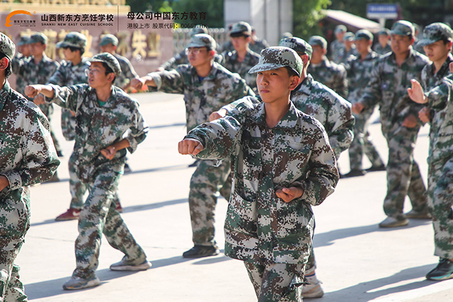 終于,在一刻,他們綠色的軍裝雕塑成了熱血的軍魂,彰顯出新東方烹飪學(xué)子的風(fēng)采與魅力。