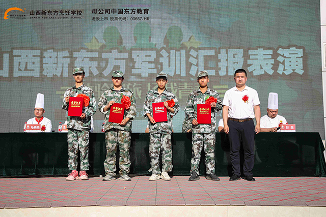 山西新東方烹飪學(xué)校校區(qū)各部門負責(zé)人、軍訓(xùn)教官等領(lǐng)導(dǎo)親臨現(xiàn)場,見證屬于24級學(xué)子們的高光時刻。