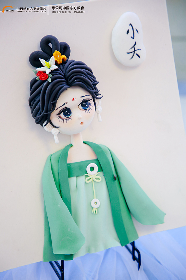 如果說烘焙與裱花是味覺與視覺的雙重享受,那么翻糖作品則是對藝術(shù)創(chuàng)造力的極致挑戰(zhàn)。學(xué)生們用翻糖膏塑造出了一個個栩栩如生的人物,其精細(xì)程度令人嘆為觀止。從熒幕上的經(jīng)典角色到中國古代的神話人物,每一件翻糖作品都仿佛是一個微縮的世界,講述著屬于它自己的故事。學(xué)生們通過翻糖藝術(shù),不僅展示了他們高超的手工技藝,更傳遞了對生活美好事物的無限向往。
