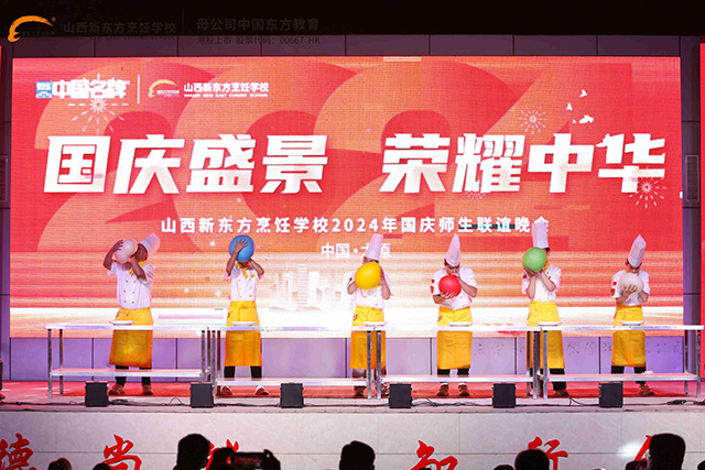 山西新東方烹飪學(xué)校于9月25晚舉辦“迎新生·慶國慶”文藝晚會。晚會現(xiàn)場,燈光璀璨,氛圍熱烈歡快。節(jié)目形式多樣,內(nèi)容豐富,既有傳統(tǒng)藝術(shù)的魅力展現(xiàn),也有現(xiàn)代文化的創(chuàng)新演繹,充分展現(xiàn)了
