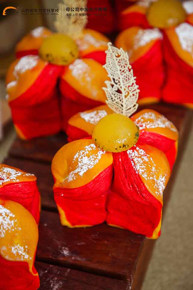 金黃酥脆的丹麥面包層次分明,咬下瞬間奶香與黃油香在口中迸發(fā);軟歐包松軟有嚼勁,麥香與餡料的融合恰到好處;翻糖蛋糕以細膩筆觸勾勒夢幻造型,每一處細節(jié)都彰顯巧思,宛如可觸摸的甜蜜藝術品;法式甜品則憑借精致擺盤與醇厚口感,盡顯法式浪漫與專業(yè)水準。每一款作品都是真材實料的堅守,更是匠心與創(chuàng)意的極致融合,用實力詮釋“在山西新東方,學好西點不是夢”!