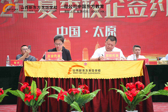 山西新東方烹飪學(xué)校創(chuàng)就業(yè)指導(dǎo)中心負(fù)責(zé)人首先代表學(xué)校對(duì)企業(yè)一行的到來(lái)表示熱烈歡迎,他指出本次簽約儀式不僅是促進(jìn)學(xué)生更加充分更高質(zhì)量實(shí)習(xí)、就業(yè)的積極行動(dòng),更是校企雙方探索建立長(zhǎng)效合作機(jī)制、推進(jìn)更深層次合作的有益探索。下一步,我們還將邀請(qǐng)企業(yè)相關(guān)管理和技術(shù)人員走進(jìn)學(xué)校,對(duì)學(xué)生和老師進(jìn)行培訓(xùn)授課,我們也會(huì)定期地組織老師和學(xué)生走進(jìn)企業(yè)進(jìn)行崗位的認(rèn)知和培訓(xùn)。