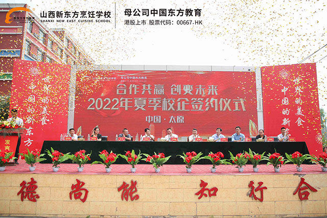 為進(jìn)一步深化校企合作、產(chǎn)教融合,主動(dòng)適應(yīng)餐飲行業(yè)發(fā)展的需要,使我校的專(zhuān)業(yè)教學(xué)更加貼近企業(yè)實(shí)際,進(jìn)一步增強(qiáng)學(xué)校的教學(xué)、實(shí)習(xí)與社會(huì)服務(wù)能力,為學(xué)生實(shí)習(xí)、實(shí)訓(xùn)、就業(yè)提供更多空間,山西新東方烹飪學(xué)校持續(xù)開(kāi)設(shè)“校企合作”定向班。6月27日,山西新東方2022年夏季校企合作簽約儀式圓滿(mǎn)舉行,我校與多家優(yōu)質(zhì)企業(yè)再度聯(lián)手,達(dá)成合作。據(jù)悉,經(jīng)過(guò)校企雙方領(lǐng)導(dǎo)在不同層面進(jìn)行密集的接洽與溝通,此次簽約,雙方將本著“資源共享、優(yōu)勢(shì)互補(bǔ)、互利互惠、共同發(fā)展”的原則,主動(dòng)適應(yīng)餐飲產(chǎn)業(yè)發(fā)展的需要,實(shí)現(xiàn)產(chǎn)業(yè)鏈與教育鏈之間的優(yōu)勢(shì)互補(bǔ),在包括西餐、西點(diǎn)等方面開(kāi)展合作共建。